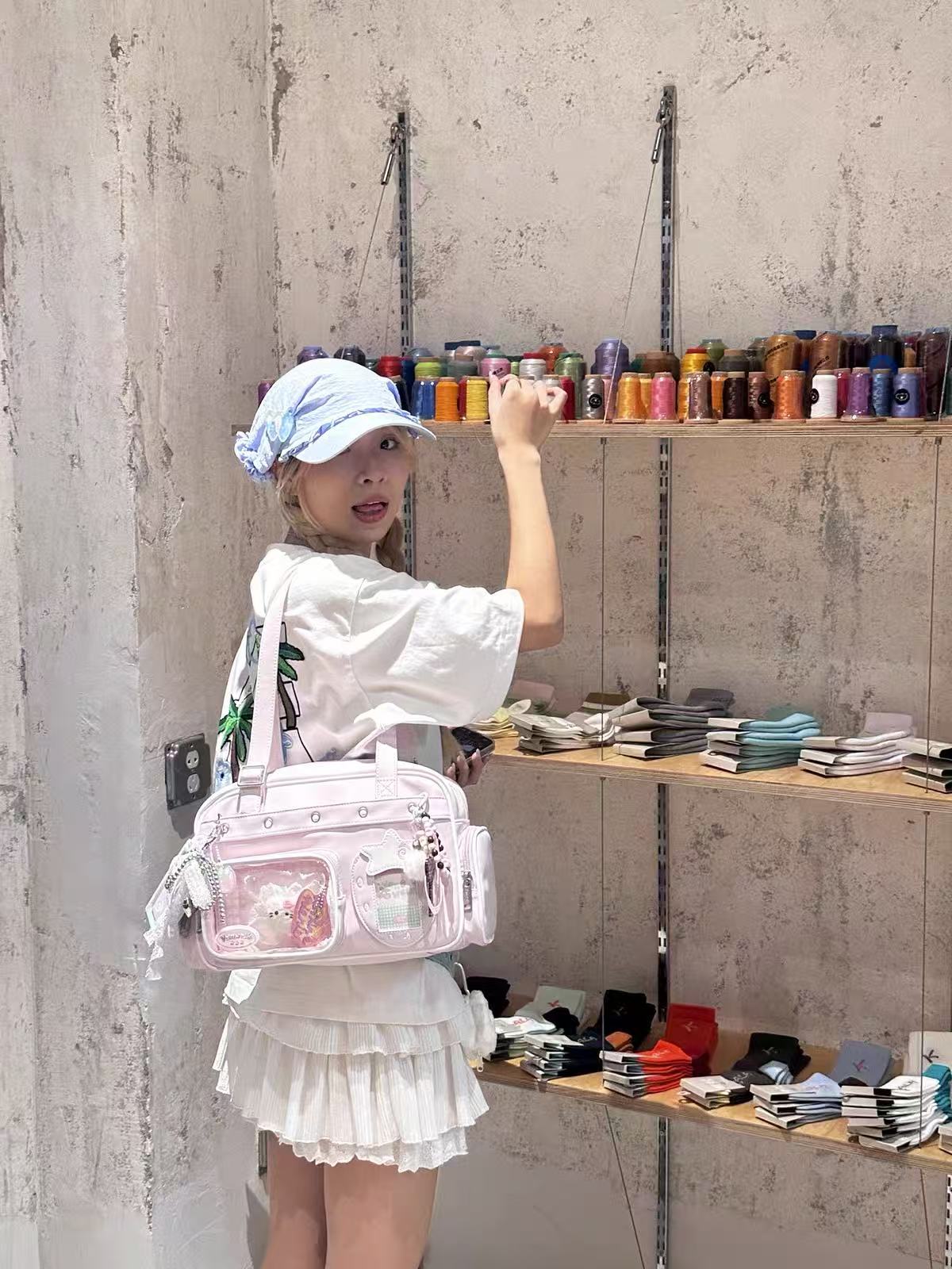 • أحضرت هذا الحقيبة إلى لقاء المعجبين وكانت نقطة تحول! الفتحة الواسعة جعلت من السهل جدًا أن ألتقط ألبومي للتوقيع بسرعة. بالإضافة إلى ذلك، اللون الوردي الناعم يبدو لطيفًا جدًا في جميع صوري في منطقة التصوير – مصمم حرفيًا لحياة المعجبين! 📸