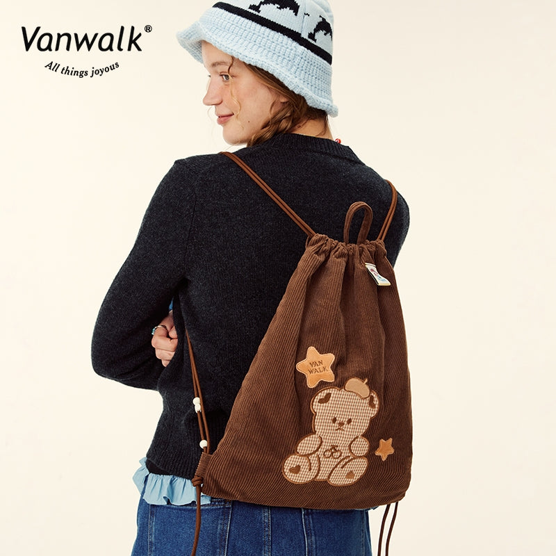 VANWALK Farm Series V2844 กระเป๋าเป้สะพายหลังสำหรับผู้หญิงสไตล์อเมริกันเรโทรสำหรับพักผ่อนและเดินทาง ปรับสายรัดได้ พร้อมเชือกรัดแบบดึง